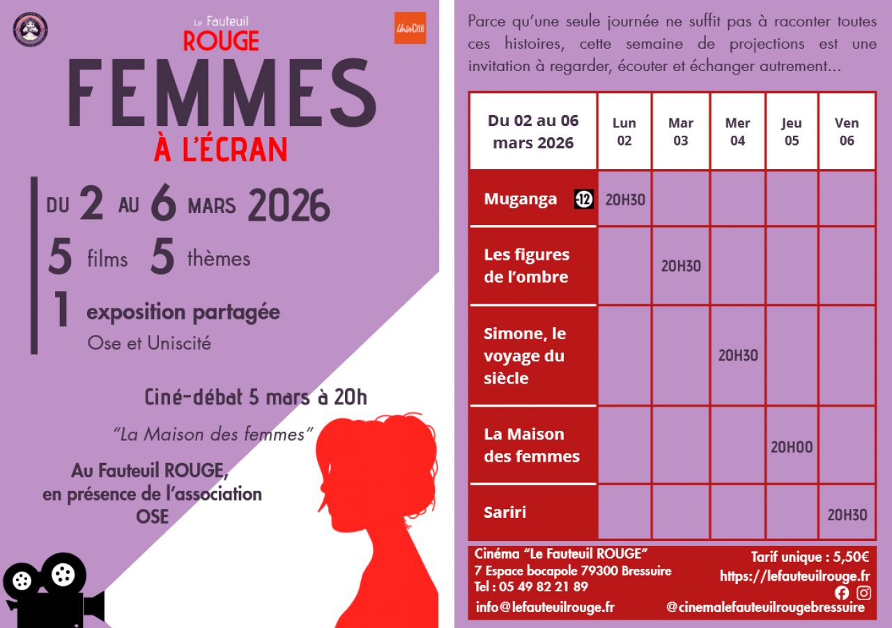 Cinéma Le Fauteuil Rouge, 7 Espace bocapole, 79300 Bressuire | Mentions légales | Confidentialité | Contact | Tel : 05 49 82 21 89